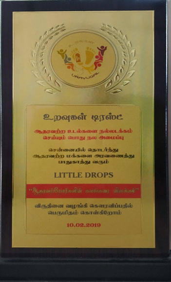 AWARDED FROM URAVUGAL TRUST AS "AADHARAVATROGALIN KALANGARAI VILLAKAM" IN THE YEAR 2019